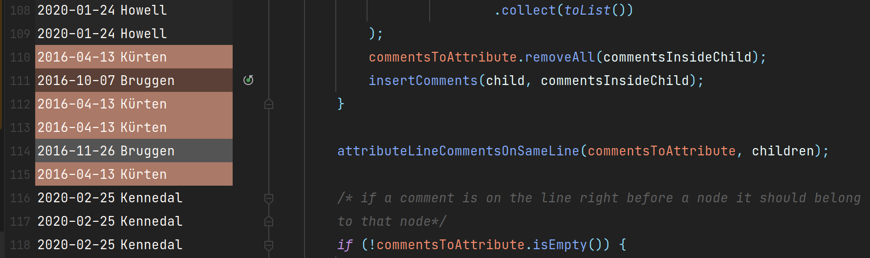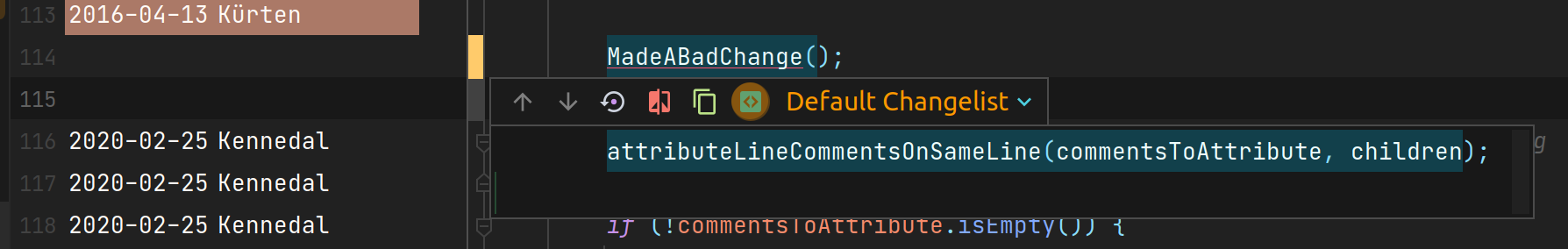 Det går att se i utvecklingsmiljöer som IDEA exakt vilka "lokala ändringar" man har gjort sedan den senaste incheckningen, genom färgläggning av marginalen till vänster om koden (högerklicka radnumren, välj "Annotate with..."). Enskilda ändringar kan lätt återställas (klicka färgläggningen, få fram hur det såg ut tidigare, välj rollback-ikonen). Se manualen.