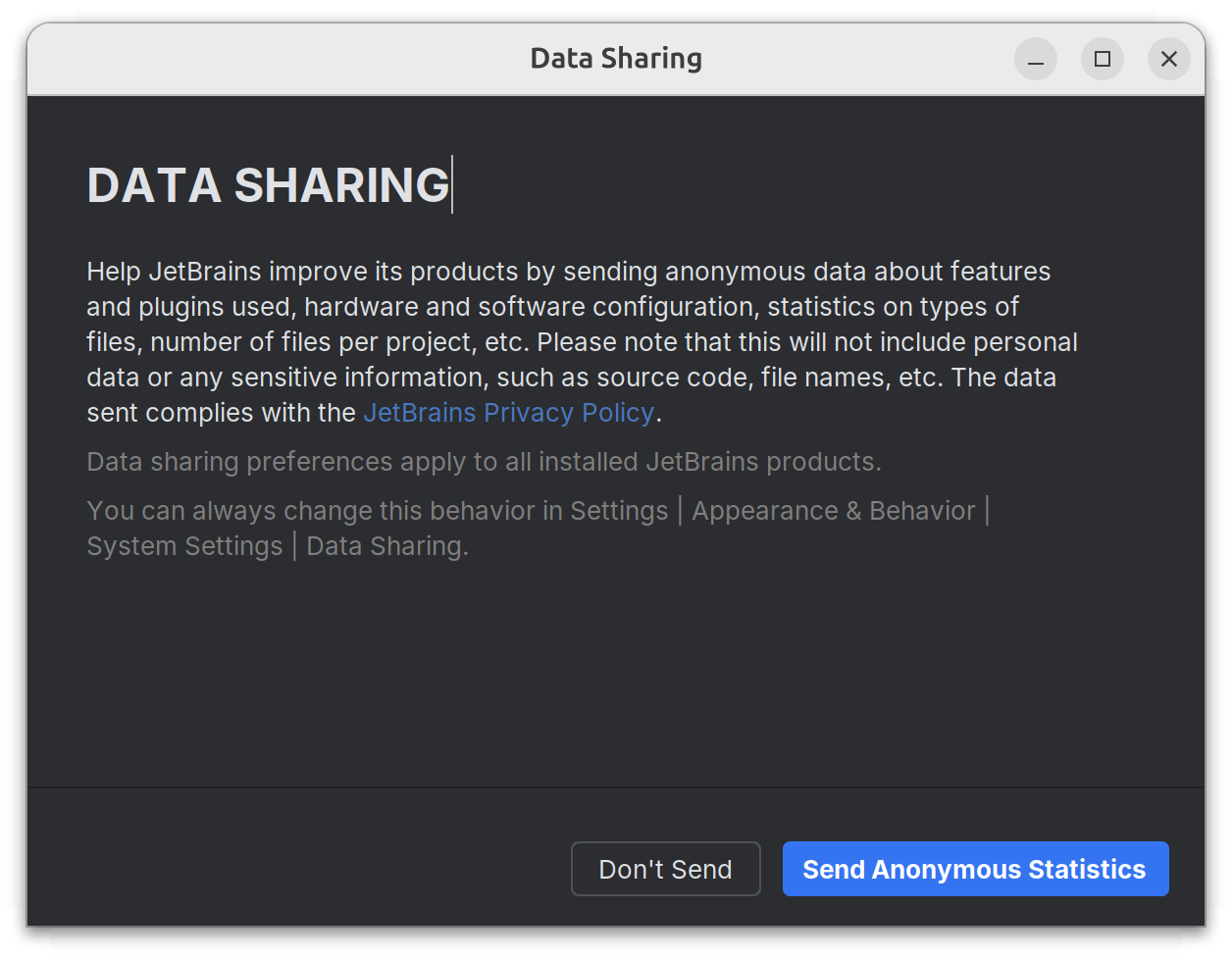 IDEA kanske frågar om den får skicka användningsstatistik till JetBrains. Svara enligt din egen åsikt.